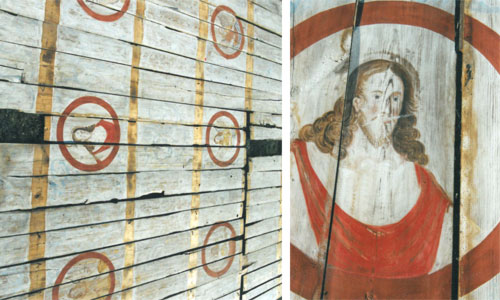 Im Inneren der Kirche wurden Fenster aus dem 17. und 19. Jahrhundert teils ergänzt und teils erneuert, das Gestühl sowie der barocke Kanzelalter wurden restauriert. Ein sensationeller Fund gab Anlaß zur Freude und zur Verlängerung der Maßnahmen: oberhalb der abgehängten Decke des Kirchenschiffs fanden sich die losen Balken einer Holzdecke mit barocker Bemalung, welche zunächst gesichert wurde und nun im letzten Bauabschnitt