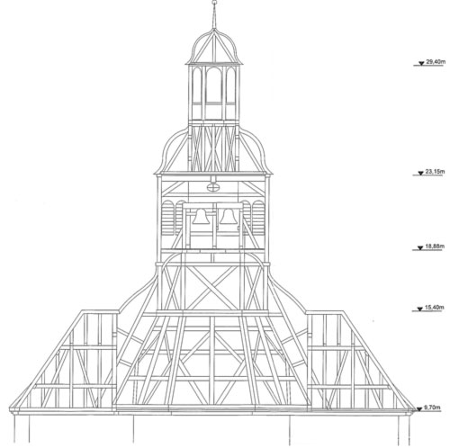 Die größte Herausforderung bei der Sanierung dieses besonderen Zentralbaus mit überkuppeltem Innenraum aus dem 17. Jahrhunderts stellte die gigantische Balkenkonstruktion dar, welche sich zwischen dem Kirchturm und der Innenkuppel befindet. Deren Substanz wie statisches Gefüge trotz der notwendigen Schwammsanierung zu erhalten, erwies sich als aufwendiges Unterfangen. Die Beseitigung von Wasserschäden, verursacht durch eine vormals falsch ausgeführte Dachdeckung sowie eine erneute, fachgerechte Deckung des außergewöhnlichen Kuppeldaches in Schiefer samt Sanierung/Erneuerung des Turmes, der Laterne und der Turmbekrönung komplettierten die Maßnahmen an der Kirche.